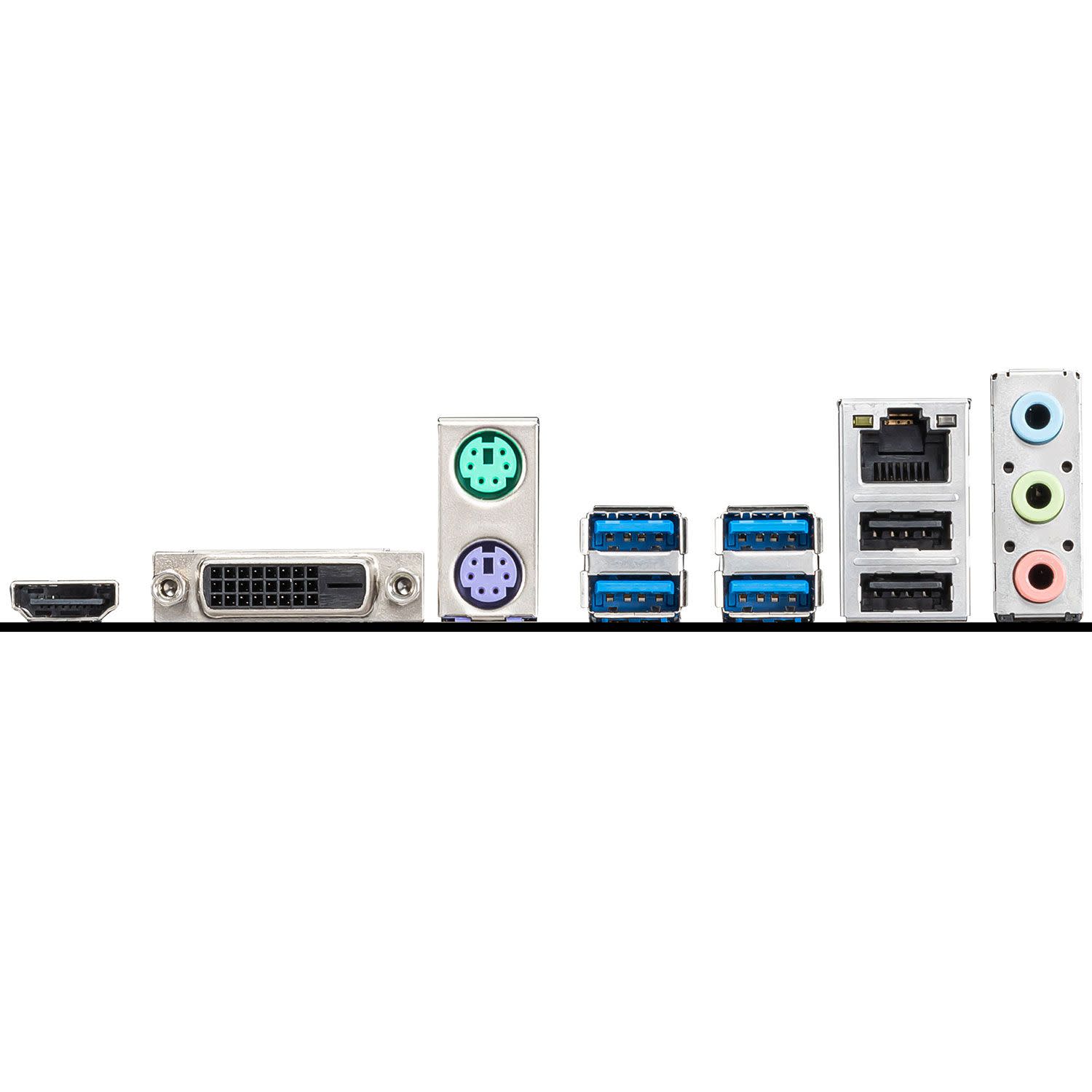 Στο I/O Back Panel της μητρικής υπάρχουν οι υποδοχές: Gigabit LAN, HDMI 2.1, DVI-D, 2x PS/2 για πληκτρολόγιο και ποντίκι, 4x USB 3.2 Gen1 5Gbps (Type-A), 2 x USB 2.0 και υποδοχές Audio.
