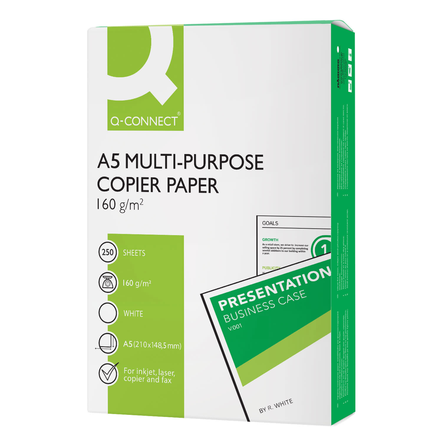 Μην στερηθείς καμία εκτύπωση στην καθημερινότητά σου! Το βάρος των 160γρ. είναι κατάλληλο ώστε να καλύψει τις καθημερινές σου ανάγκες σε αντίγραφα Α5. Το φωτοτυπικό χαρτί Q-Connect είναι η απόλυτη οικονομική λύση για το γραφείο και το σπίτι.