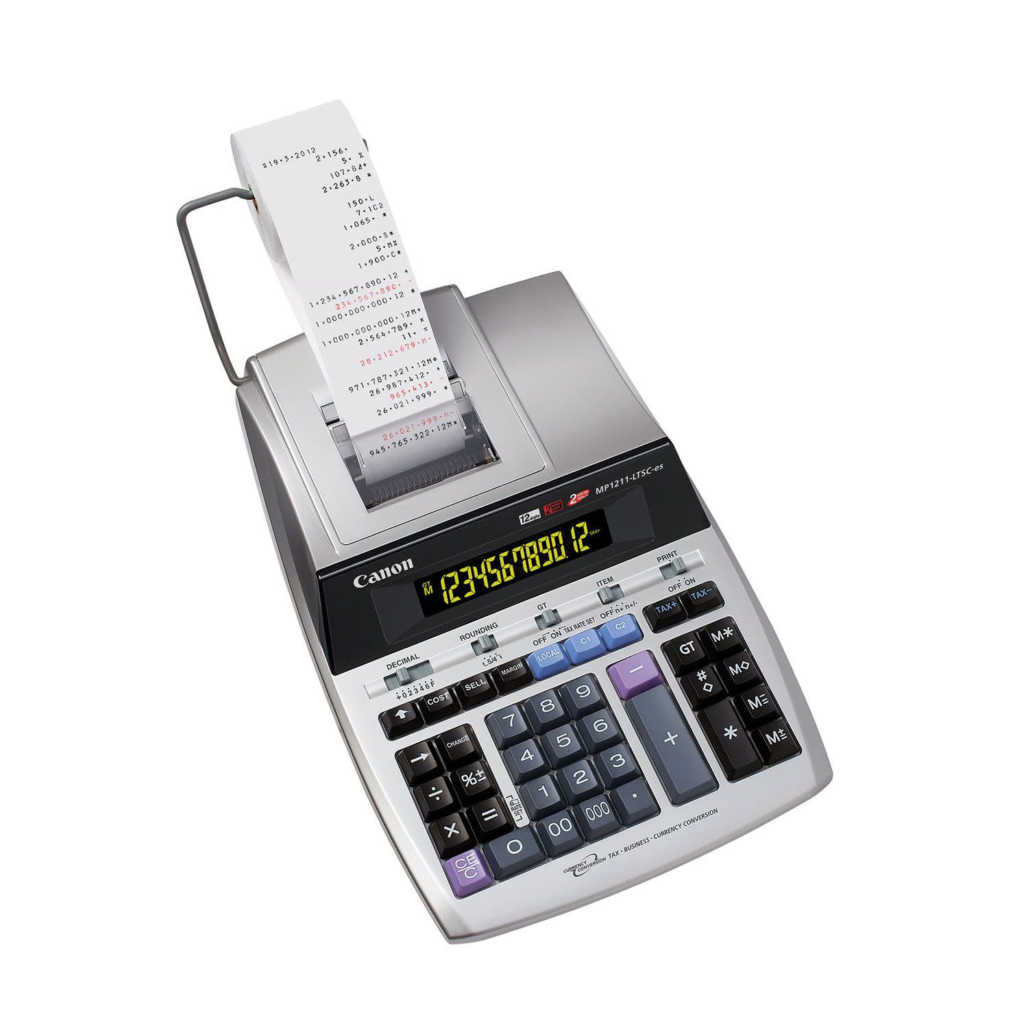 Η αριθμομηχανή 12 ψηφίων με την υπογραφή της Canon διαθέτει ταινία και δυνατότητα εκτύπωσης σε μπλε - κόκκινο χρώμα, με ταχύτητα 2,7 γραμμών ανά δευτερόλεπτο.