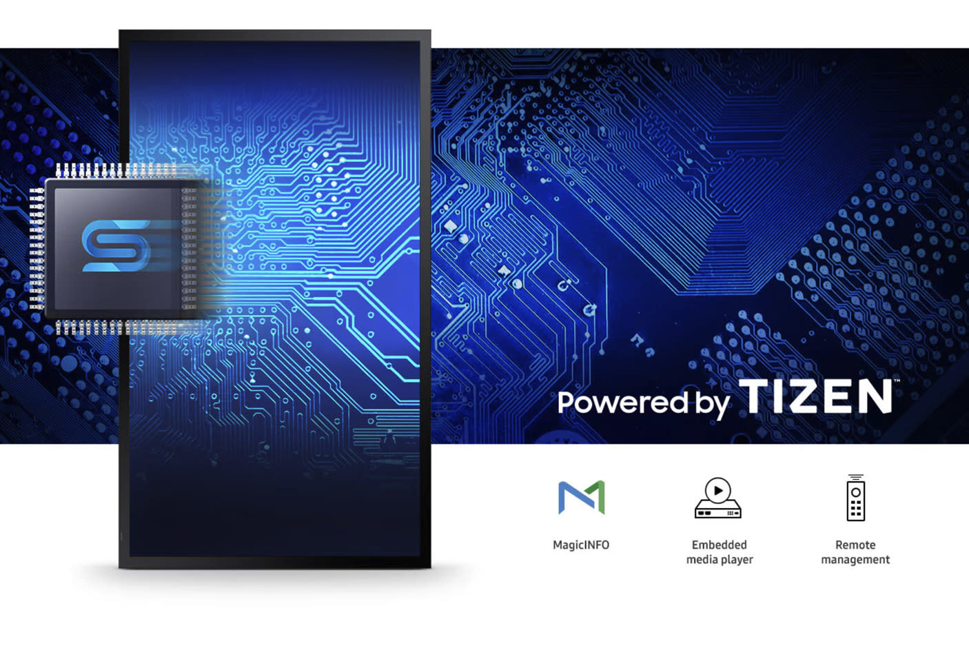 Υποστηριζόμενο από το ισχυρό λειτουργικό σύστημα TIZEN, το ενσωματωμένο MagicINFO Player S7 (απαιτείται άδεια, πωλείται χωριστά) ενισχύει τη συνολική απόδοση της οθόνης και προσφέρει ανώδυνη διαχείριση περιεχομένου. Επίσης, εξασφαλίζει απρόσκοπτες μεταβάσεις και αναπαραγωγή για να προσφέρει καλύτερη εμπειρία τόσο στους πελάτες όσο και στους διαχειριστές των καταστημάτων.