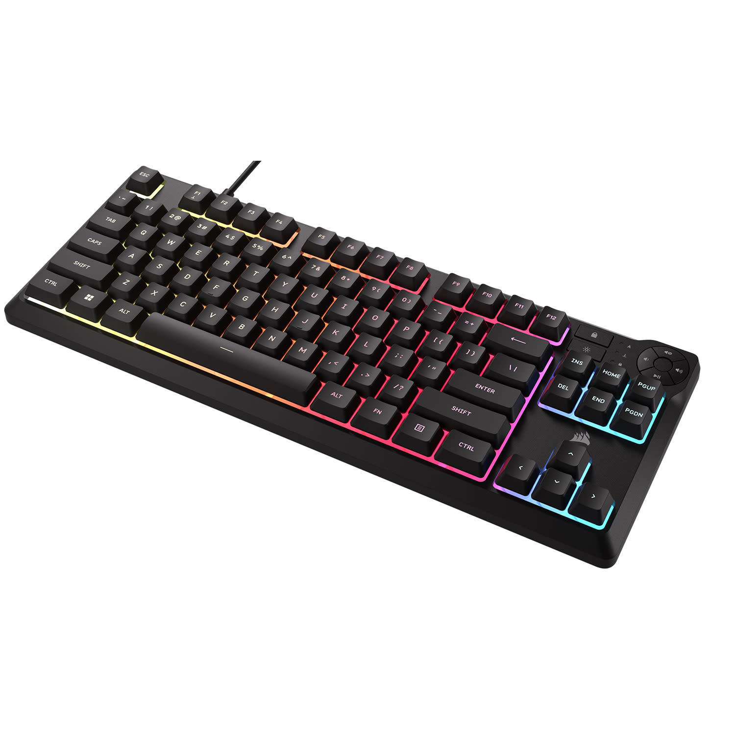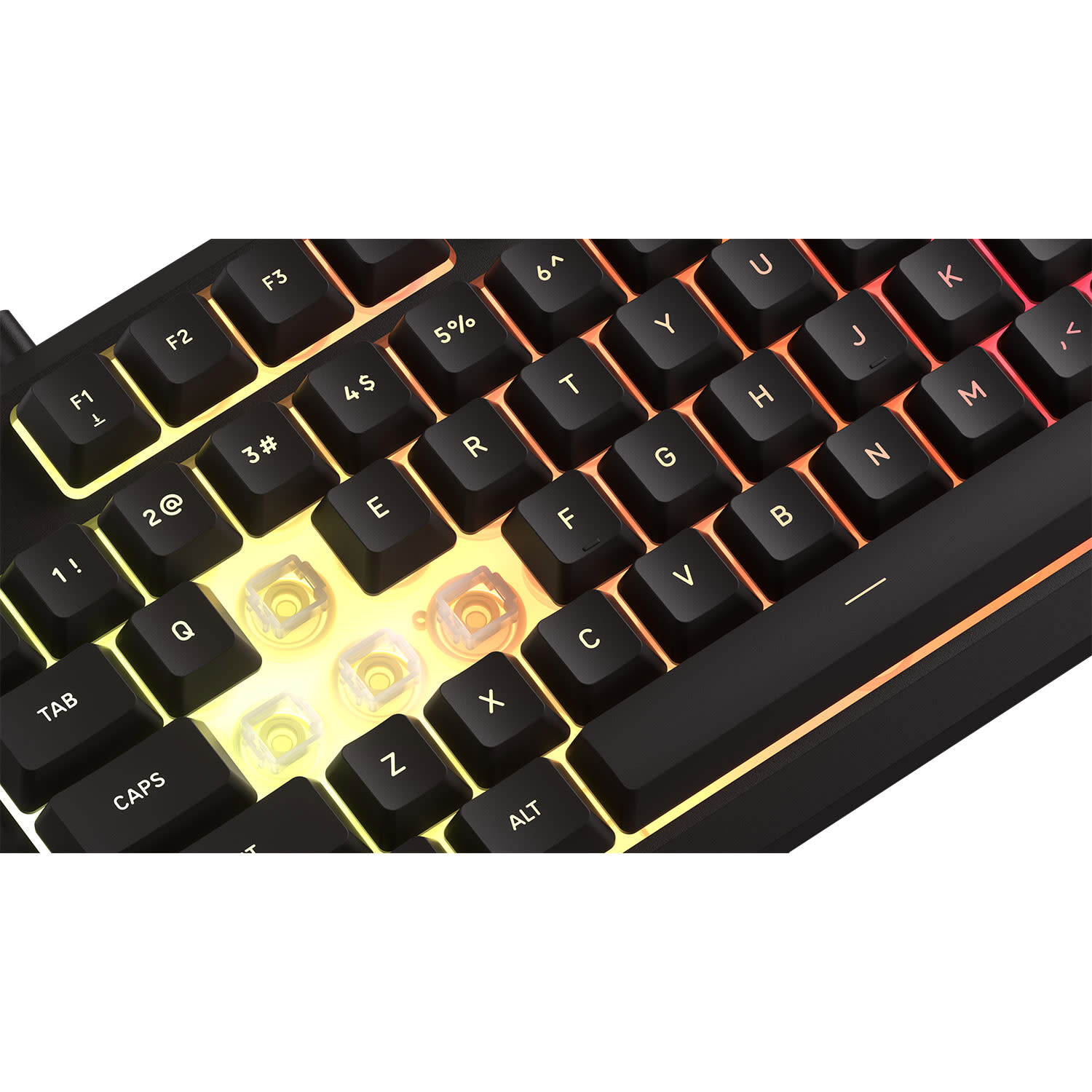 Το αθόρυβο K55 CORE TKL RGB Gaming Keyboard είναι ένα ανθεκτικό στα υγρά, «tenkeyless» πληκτρολόγιο μεμβράνης με ειδικά κουμπιά ελέγχου πολυμέσων — ιδανικό για gamers που θέλουν περισσότερο χώρο.
