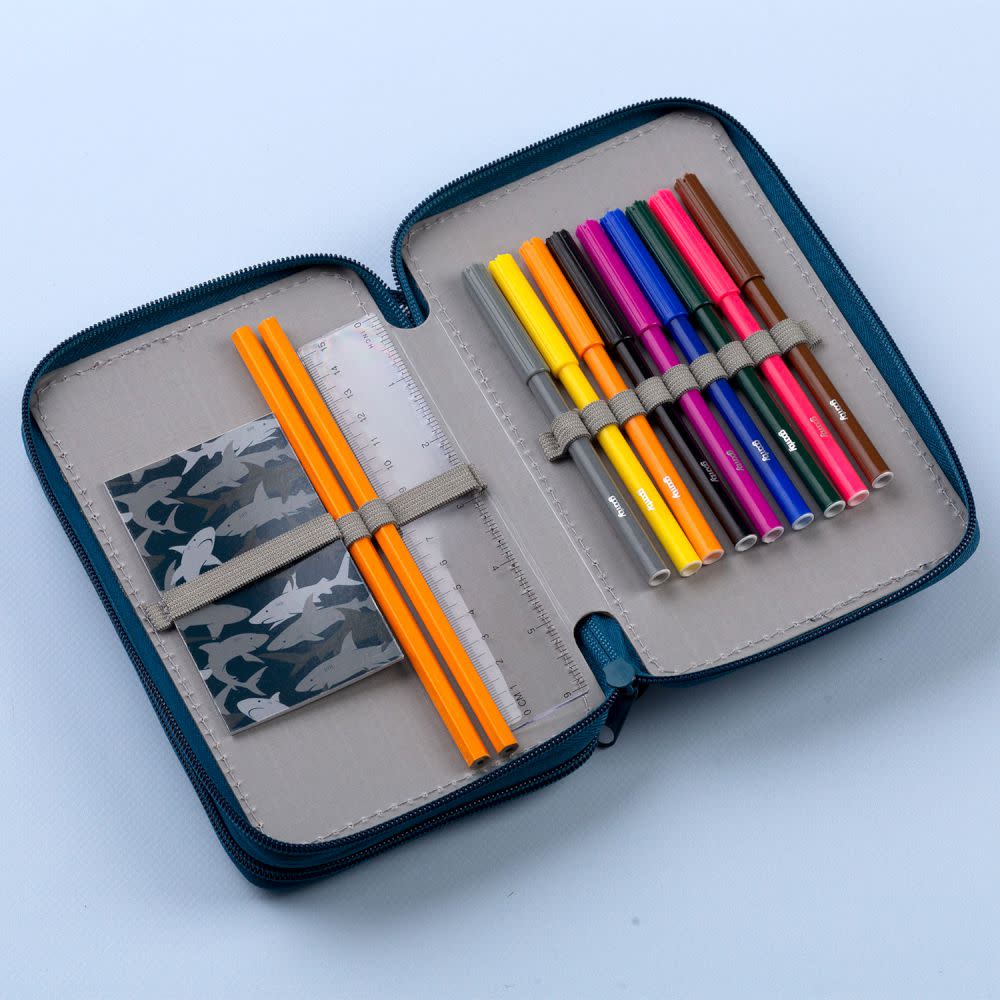Εξοπλίσου πλήρως για τη νέα σχολική χρονιά με τη γεμάτη κασετίνα Shark της Goomby. Η κασετίνα περιλαμβάνει όλη την απαραίτητη γραφική ύλη που θα χρειαστείς κατά τη διάρκεια μιας σχολικής μέρας και σου δίνει τη δυνατότητα να την μεταφέρεις με ασφάλεια και στιλ, χάρη στο μοναδικό της σχέδιο!