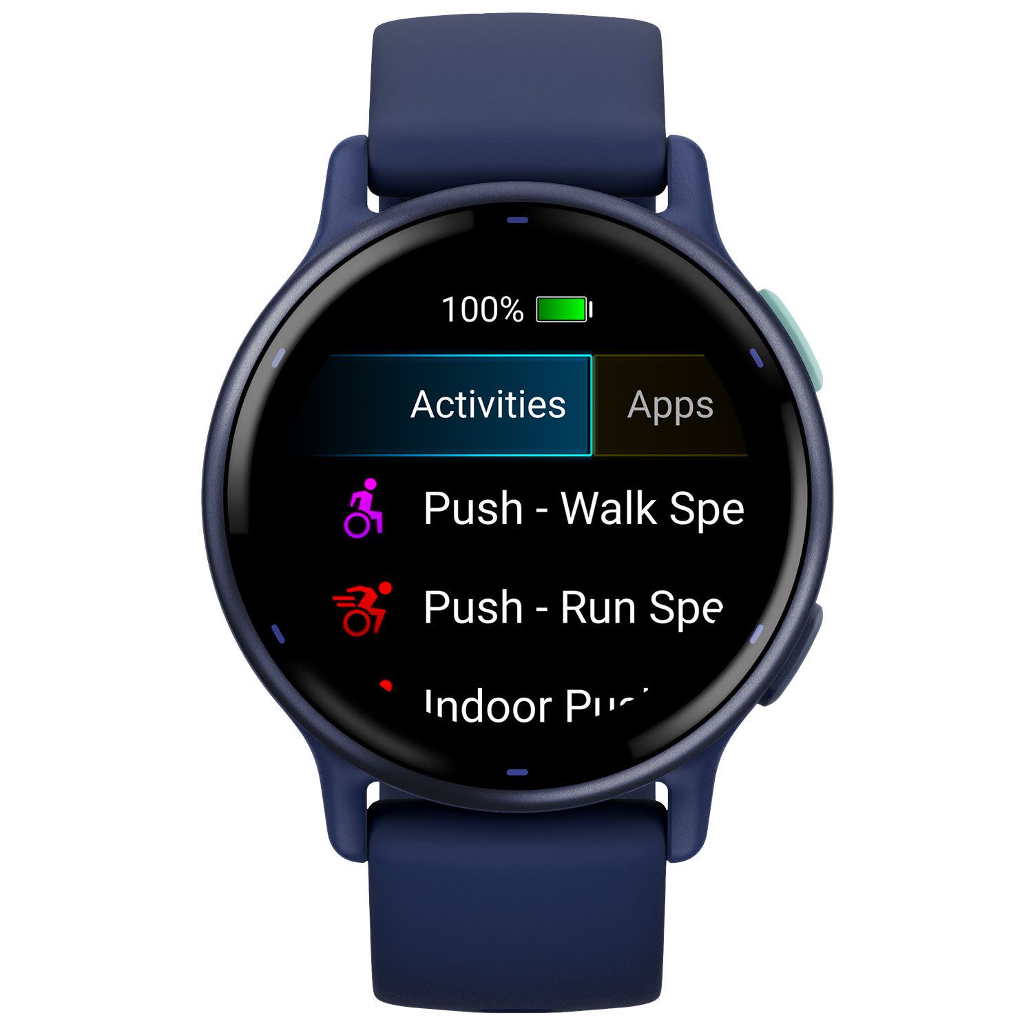 Η λειτουργία αμαξιδίου καταγράφει ωθήσεις – αντί για βήματα – και περιλαμβάνει δραστηριότητες ωθήσεων και χειρήλατου αμαξιδίου με προφορτωμένες ασκήσεις για ενδυνάμωση, αερόβια, HIIT, Pilates και γιόγκα, αναμετρήσεις για χρήστες αμαξιδίων και ακόμα περισσότερα. (τα δεδομένα προορίζονται να είναι μία κοντινή εκτίμηση των μετρήσεων που καταγράφονται)