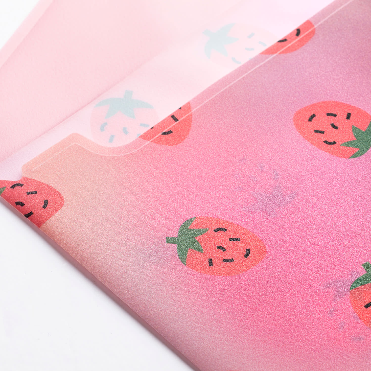 Οργάνωσε τις σημειώσεις, τις παρουσιάσεις, τις φωτοτυπίες, τις φωτογραφίες και ό,τι άλλο χρειάζεσαι για το σχολείο και την καθημερινότητά σου, συγκεντρώνοντάς τα στον φάκελο «Strawberries». Αποθήκευσε φύλλα διαστάσεων Α4 και τοποθέτησέ τον μέσα στην τσάντα σου για να τον έχεις ανά πάσα στιγμή μαζί σου. Είναι κατασκευασμένος από εύκαμπτο πλαστικό και διαθέτει κουμπί για να κλείνει με ασφάλεια.