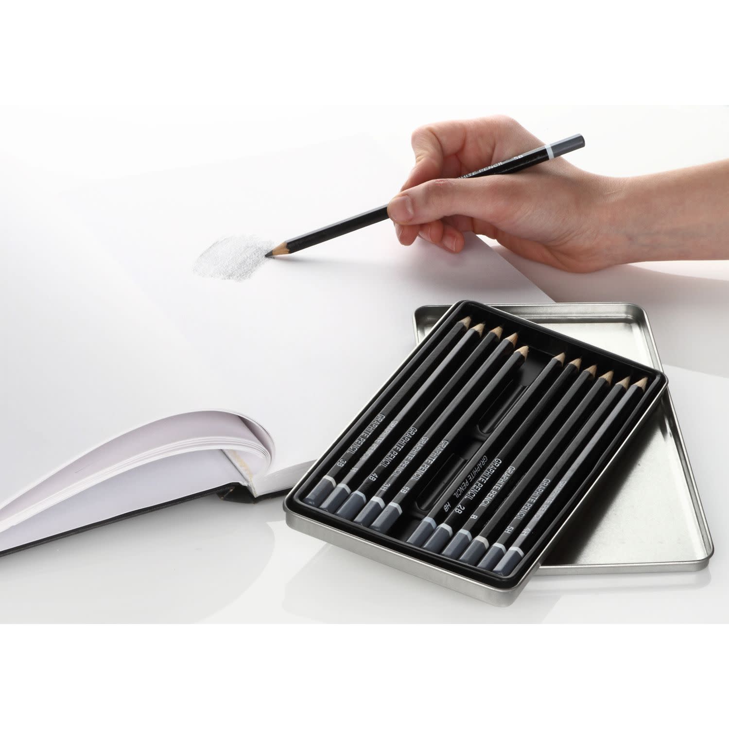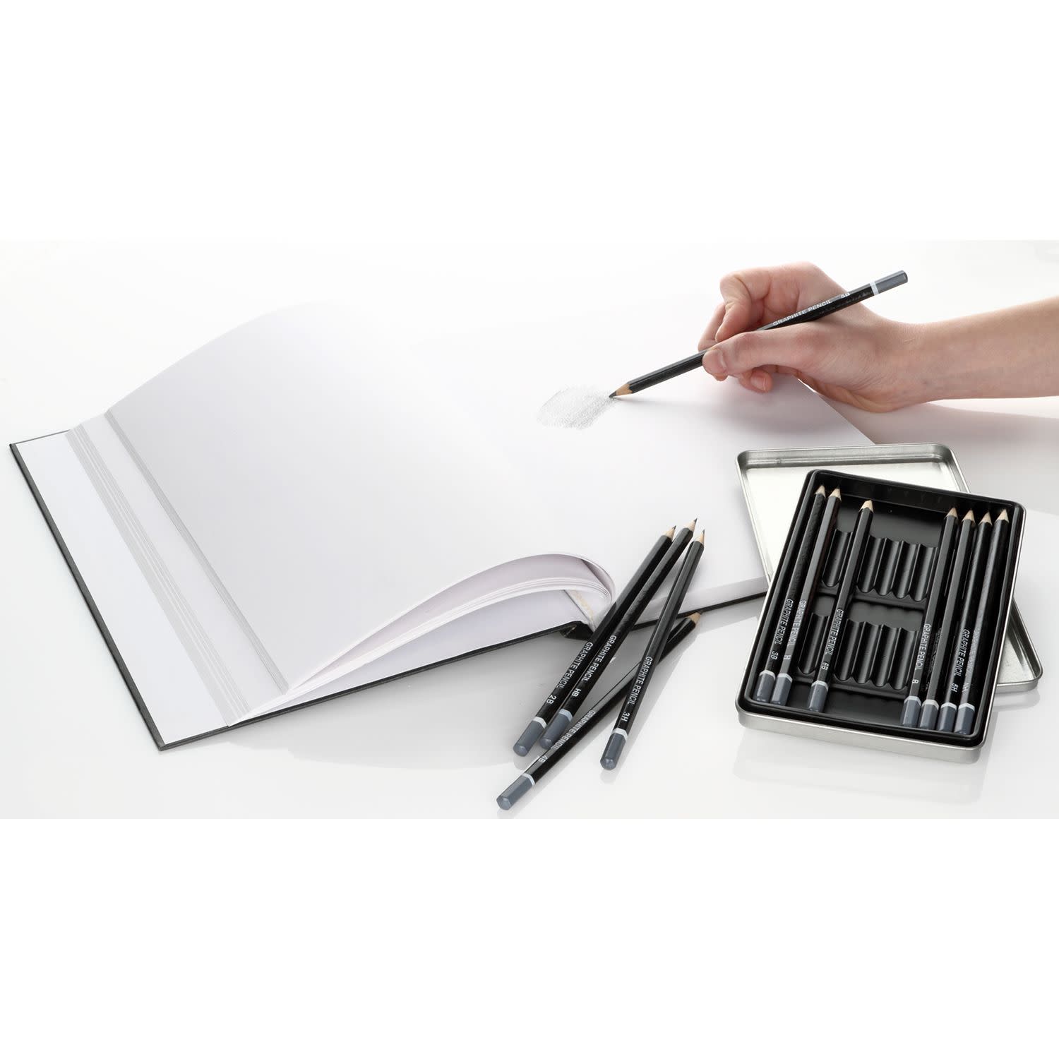 Η συσκευασία περιλαμβάνει μία κασετίνα με 12 μολύβια διαφορετικής σκληρότητας και ένα sketchbook 80 φύλλων, σε διάσταση Α4.