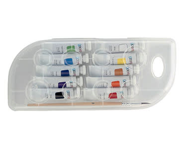 Σετ από 10 μη τοξικές, υδατοδιαλυτές τέμπερες και ένα πινέλο που θα δώσουν βελούδινο και ματ αποτέλεσμα στα σχέδια σου.